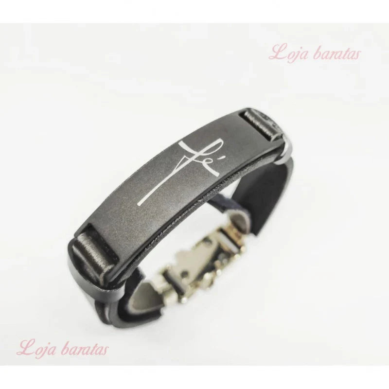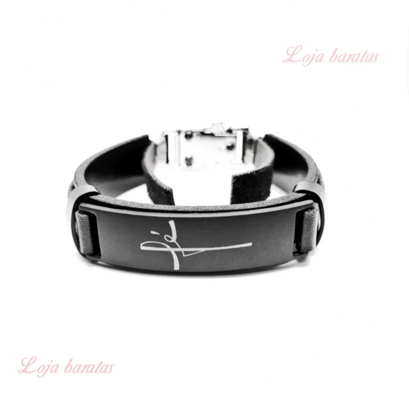 Pulseira Masculina de Couro Sintético – Estilo e Fé em Cada Detalhe